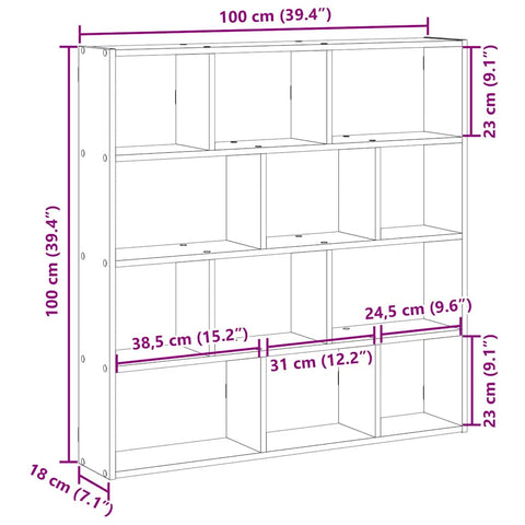 Wall Cube Shelf 12 Compartments Concrete Grey Engineered Wood 860007