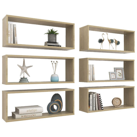 Wall Cube Shelf 6 pcs Sonoma Oak 60x15x23 cm Engineered Wood 807144