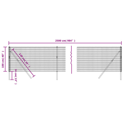 Wire Mesh Fence Anthracite 1x25 m Galvanised Steel 154201