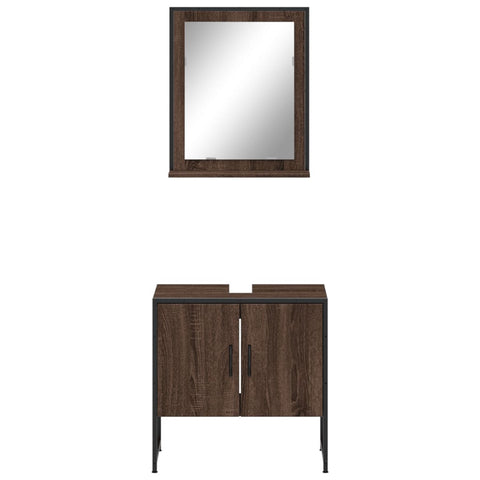 2 Piece Bathroom Cabinet Set Brown Oak Engineered Wood 3214338