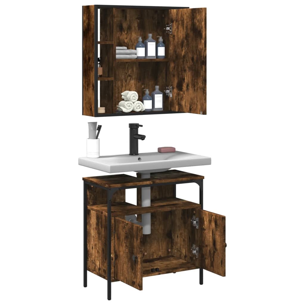 2 Piece Bathroom Furniture Set Smoked Oak Engineered Wood 3214717