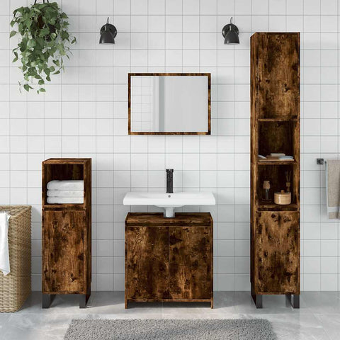 2 Piece Bathroom Furniture Set Smoked Oak Engineered Wood 835697