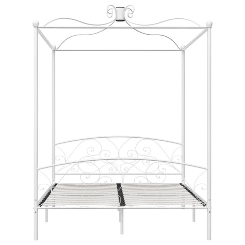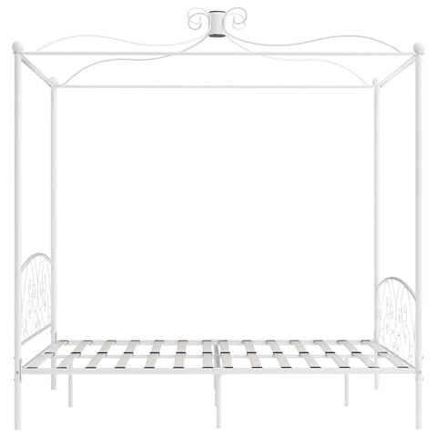 284473 Canopy Bed Frame without Mattress White Metal 180x200 cm Super King