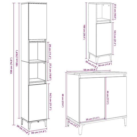 - Bathroom cabinet dimensions (L): 30 x 30 x 190 cm (W x D x H)