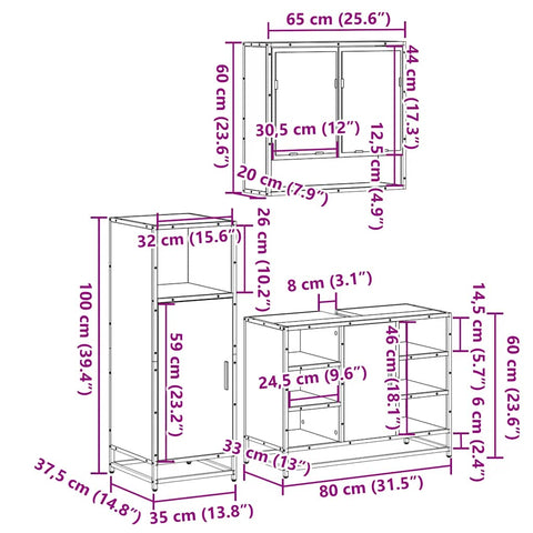 3 Piece Bathroom Furniture Set Grey Sonoma Engineered Wood 3301003