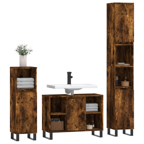 3 Piece Bathroom Furniture Set Smoked Oak Engineered Wood 3190312
