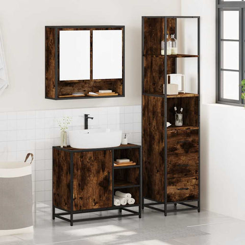 3 Piece Bathroom Furniture Set Smoked Oak Engineered Wood 3301177