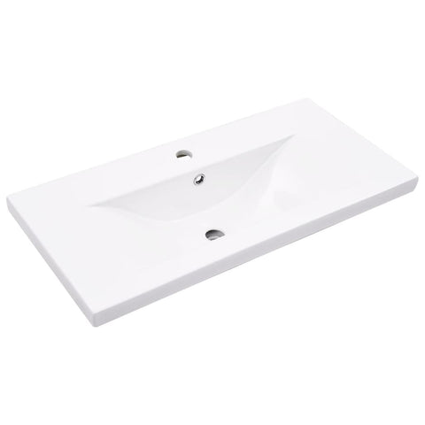 This handy bathroom furniture set, featuring spacious storage space, is an excellent addition to your bathroom, giving it a tidy and striking appearance! Long-lasting material: The engineered wood is of exceptional quality with a smooth surface and also features strength, stability and resistance to moisture.Durable material: The bathroom sink, made of ceramic, has a durable surface that resists impacts, stains, and scratches, ensuring its long-lasting shine.Ample storage space: The bathroom cabinet offers ample storage space for keeping your various daily essentials well organised and within easy reach.Space-saving design: The bathroom furniture can be wall-mounted to add extra storage space. That way, you can maximise your floor space and keep the area clean. Good to know:Screws and plugs for inside the wall are not included. We advise you to find and use screws and plugs suitable specifically for your walls. If you're not sure, you can consult with a professional. Please read and follow each step of the instructions.