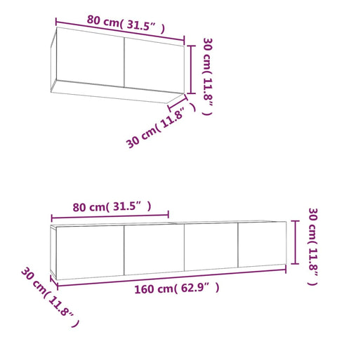 This classic TV cabinet set is designed to be a focal point of your room, featuring a trendy yet practical design. Sturdy material: The engineered wood is of exceptional quality with smooth surface and also features strength, stability and resistance to moisture.Ample storage space: The TV stand set provides ample storage space to keep all your magazines, DVDs and any other items well organised.Wall-mounted design: The TV unit doesn't take any floor space. You can hang it on the wall easily. Note:Screw(s) and plug(s) for inside the wall are not included. Seek and use screw(s) and plug(s) suitable for your walls. If you are uncertain, seek professional advice. Read and follow each step of the instruction carefully.Each product comes with an assembly manual in the box for easy assembly.