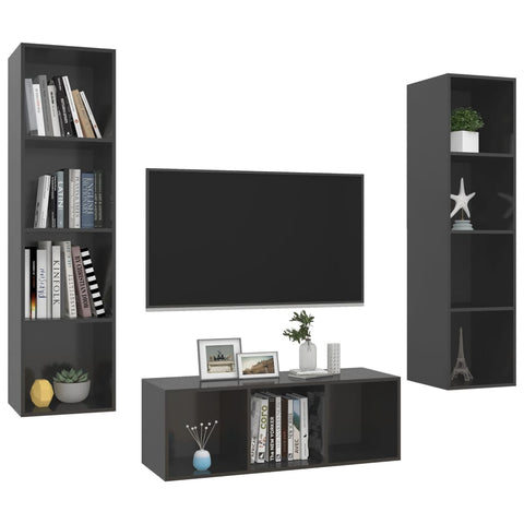3 Piece TV Cabinet Set High Gloss Grey Engineered Wood 3079762