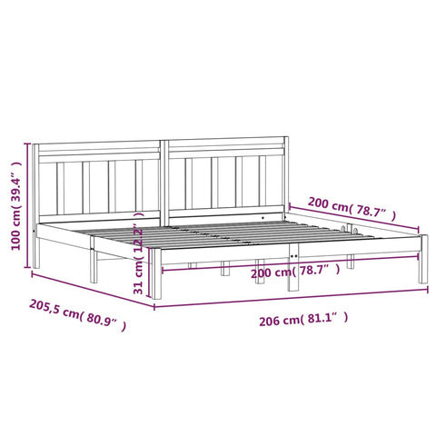 3100613 Bed Frame without Mattress Black Solid Wood 200x200 cm
