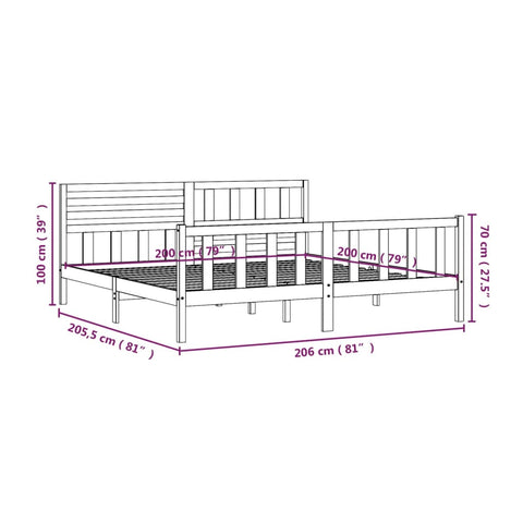 Featuring a simple yet timeless design, this bed frame is meant to make a truly practical and decorative addition to your bedroom. Premium material: Solid pine wood is a beautiful natural material. Pine wood has a straight grain, and the knots give the material its signature, rustic look. Sturdy and stable frame: The wooden frames ensure sturdiness and stability. The solid pinewood slats provide additional support for your bed. It extends the lifetime of your mattress by absorbing most of the stress and weight on the bed.Eye-catching design: The headboard and footboard design is both decorative and practical. It adds a unique style and comfort. Good to know:The mattress is not included. You can check our shop for the matching mattresses.Some headboard parts are packaged in the bed frame cartons due to space limitations.This bed frame is suitable for a mattress measuring 200 x 200 cm.