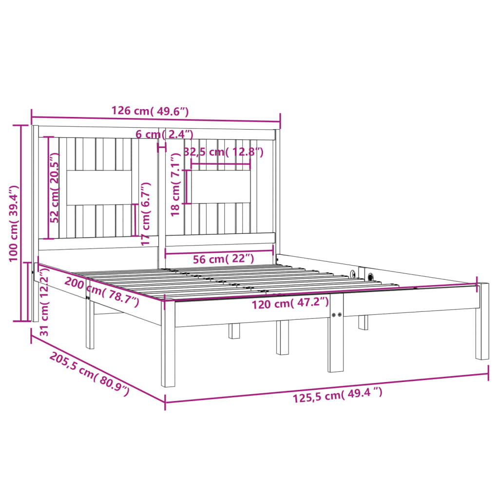 3104059 Bed Frame without Mattress White Solid Wood 120x200 cm