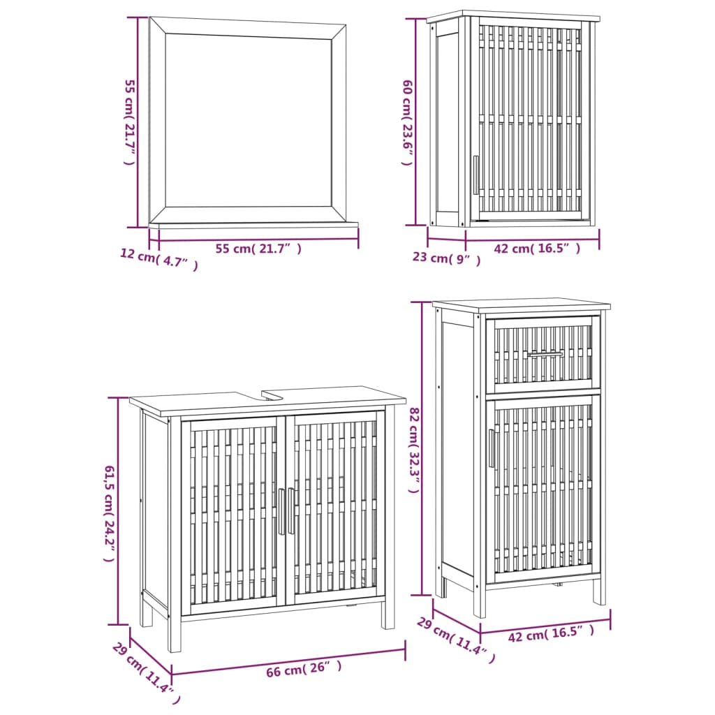 4 Piece Bathroom Furniture Set Solid Wood Walnut 3185785