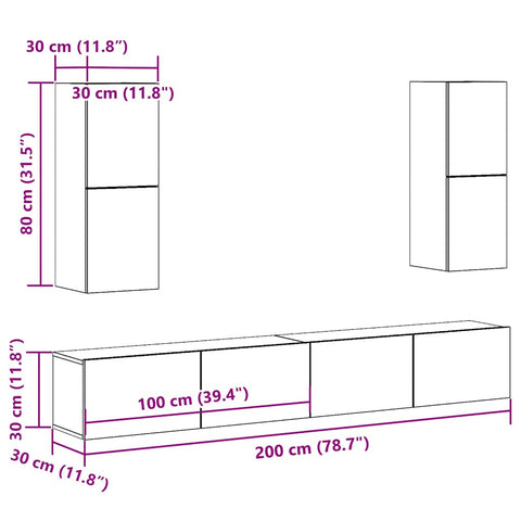 4 Piece TV Cabinet Set Wall-mounted Artisan Oak Engineered Wood 3329018