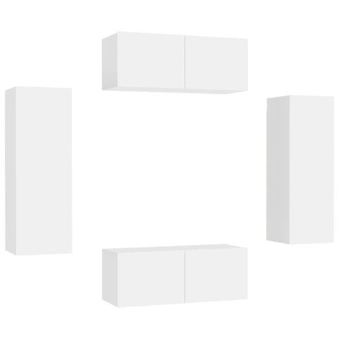 4 Piece TV Cabinet Set White Engineered Wood 3078666