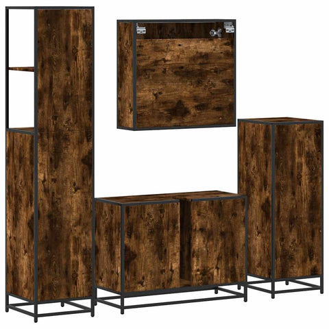 4 Piece Bathroom Furniture Set Smoked Oak Engineered Wood 3301302