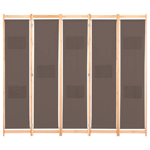 5-Panel Room Divider Brown 200x170x4 cm Fabric 248181