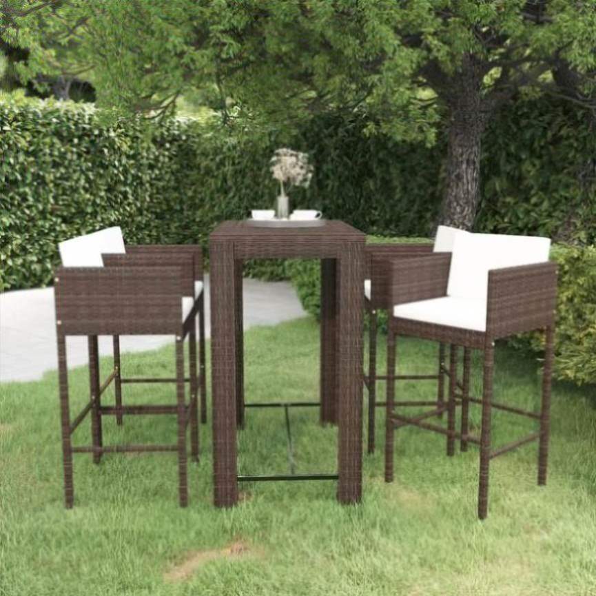 5 Piece Garden Bar Set with Cushions Poly Rattan Brown 3095385