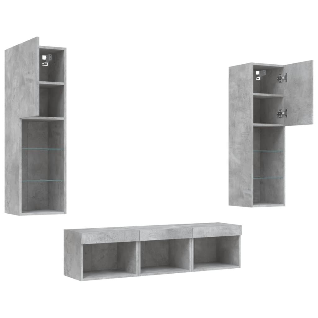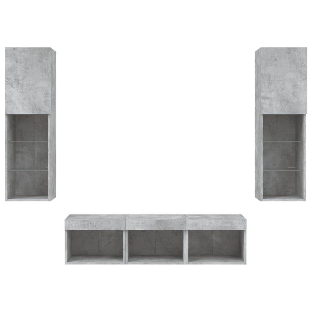 5 Piece TV Wall Units with LED Concrete Grey Engineered Wood 3216607