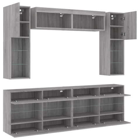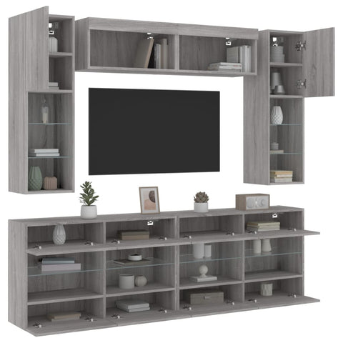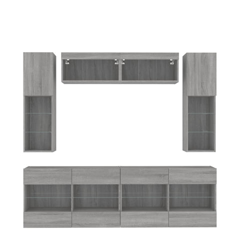 6 Piece TV Wall Cabinet Set with LED Lights Grey Sonoma 3216802