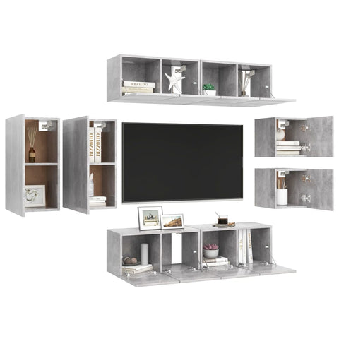 8 Piece TV Cabinet Set Concrete Grey Engineered Wood 3079124