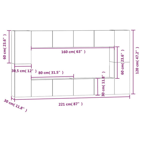 8 Piece TV Cabinet Set Concrete Grey Engineered Wood 3114289