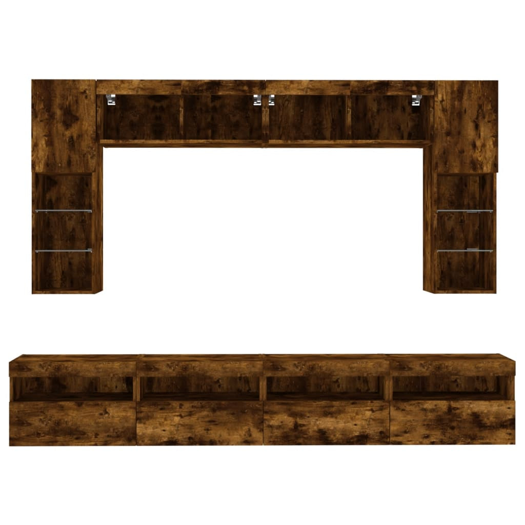 8 Piece TV Wall Cabinet Set with LED Lights Smoked Oak 3216768
