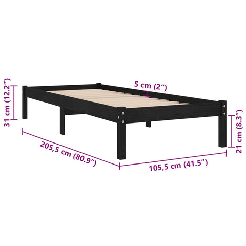 810011 Bed Frame without Mattress Black Solid Wood 100x200 cm