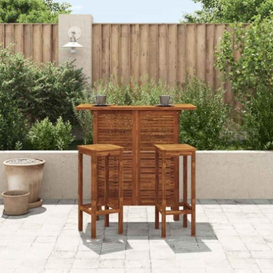 Take a sip of your favourite wine or enjoy a nice meal with your family or friends around this solid acacia wood bar table. The wooden table will bring a rustic charm to your outdoor or indoor living space. The high bar table is made of solid acacia wood, a tropical hardwood, which is stable, durable and weather-resistant. The oil finish gives the table a warm colour and makes it easy to maintain. The high table has 2 shelves for keeping food and drinks within easy reach. The table is easy to assemble.
