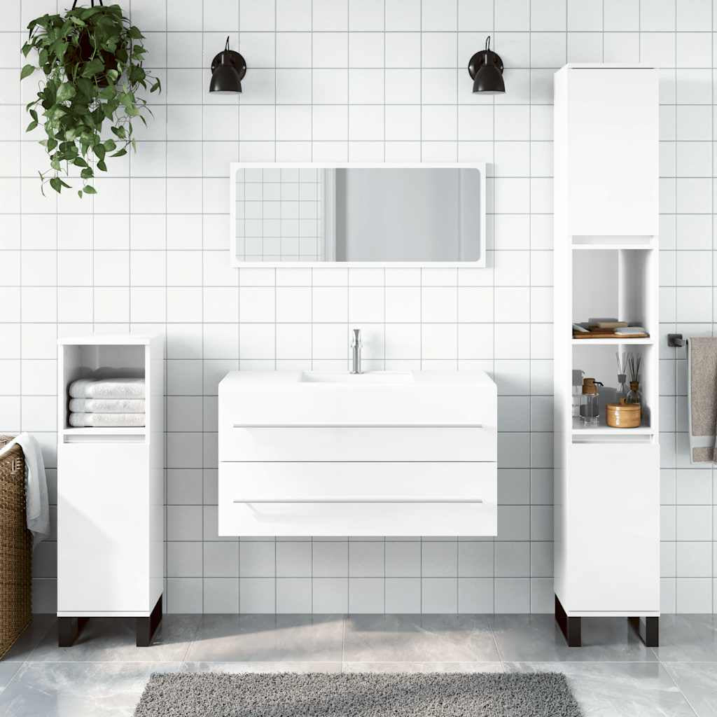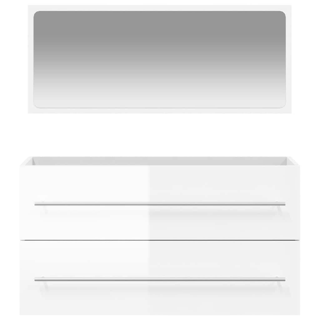 Bathroom Cabinet with Mirror High Gloss White Engineered Wood 833883
