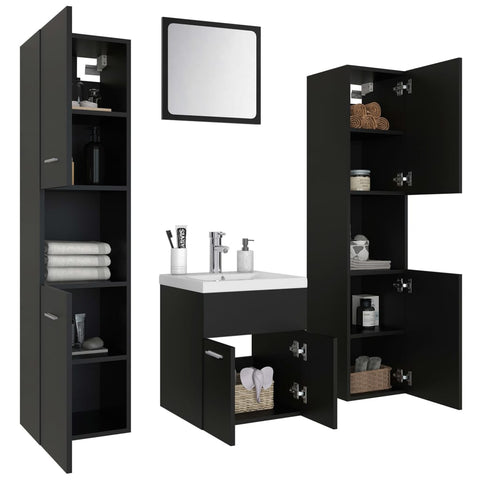 Bathroom Furniture Set Black Engineered Wood 3071487