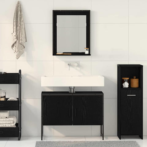 Bathroom Furniture Set Wall-mounted 2 pcs Black Engineered wood 3334333