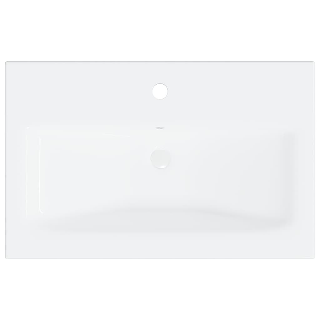 With this stylish bathroom furniture set, you can create additional storage space for your bathroom with a striking, tidy appearance. The clean lines and sleek design blend into your bathroom perfectly. The furniture set consists of a sink cabinet, 2 high cabinets, a built-in basin, and a mirror. The chic basin cabinet has 1 compartment, and the top of it is ideal for placing the sink. Each high cabinet features a total of 5 compartments and 2 doors, offering ample space to store items in your bathroom. Made of ceramic, the basin can not only serve as a vessel for daily use but also as an adornment in your living space. Thanks to its trendsetting and contemporary design, this washbasin will definitely suit any decor. An overflow is equipped to flow water out when it gets too full. The mirror also adds an excellent appearance to your home decor. Additionally, this bathroom set is easy to clean with a damp cloth. Please note: The faucet and push drainer with overflow function are included in the delivery.