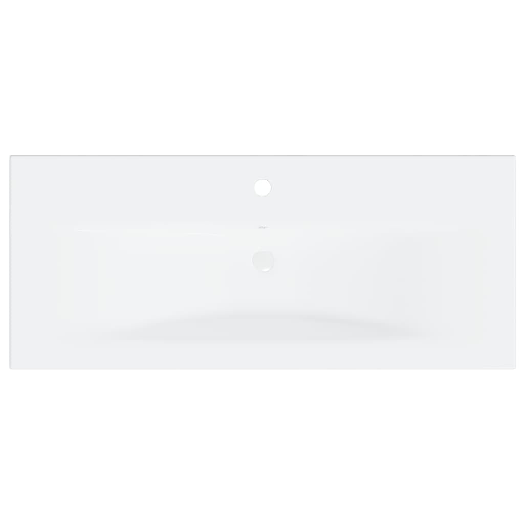With this stylish bathroom furniture set, you can create additional storage space for your bathroom with a striking, tidy appearance. The clean lines and sleek design blend into your bathroom perfectly. The furniture set consists of a sink cabinet, 2 high cabinets, a built-in basin, and a mirror. The chic basin cabinet has 1 compartment, and the top of it is ideal for placing the sink. Each high cabinet features a total of 5 compartments and 2 doors, offering ample space to store items in your bathroom. Made of ceramic, the basin can not only serve as a vessel for daily use but also as an adornment in your living space. Thanks to its trendsetting and contemporary design, this washbasin will definitely suit any decor. An overflow is equipped to flow water out when it gets too full. The mirror also adds an excellent appearance to your home decor. Additionally, this bathroom set is easy to clean with a damp cloth. Please note: The faucet and push drainer with overflow function are included in the delivery.