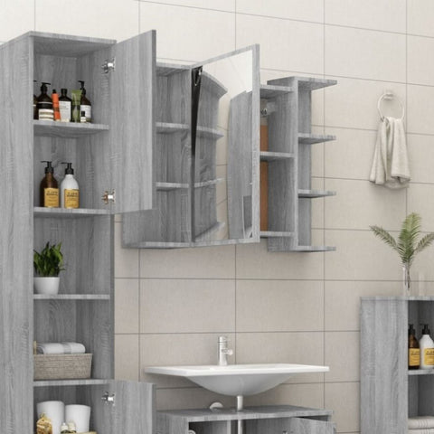 Bathroom Mirror Cabinet Grey Sonoma 80x20.5x64cm Engineered Wood 815523