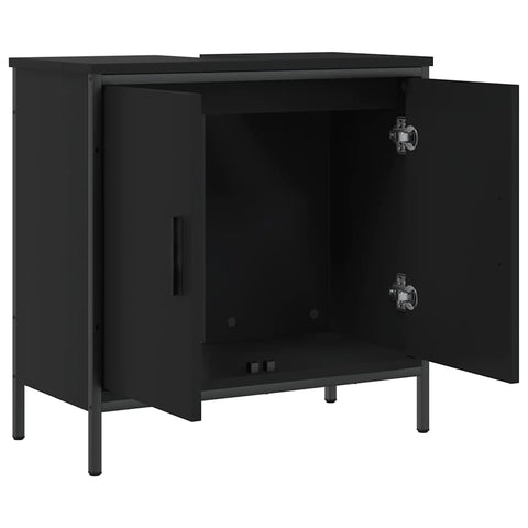 This bathroom sink cabinet is an excellent addition to your bathroom, giving it a tidy and striking appearance! Sturdy construction: The powder-coated steel and engineered wood ensure sturdy construction and provide your items with strong support.Ample storage space: The bathroom sink cupboard offers ample space to easily accommodate your essential toiletries and bath items such as soaps, shampoo, toothpaste, etc.Space-saving design: The top of the bathroom cabinet is ideal for placing the sink so that you can fully utilise the vacant space under the sink. Warning:To prevent it being overturned, this product must be used with the provided wall attachment device.