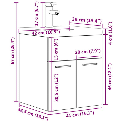 This stylish sink cabinet with a built-in basin, featuring spacious storage space, is an excellent addition to your bathroom, giving it a tidy and striking appearance! Long-lasting material: The engineered wood is of exceptional quality with a smooth surface and also features strength, stability, and resistance to moisture.Ample storage space: The bathroom sink cupboard offers ample space to easily accommodate your essential toiletries and bath items such as soaps, shampoo, toothpaste, etc.Space-saving design: The top of the bathroom cabinet is ideal for placing the sink so that you can fully utilise the vacant space under the sink.Wall-mounted function: The bathroom vanity can be wall-mounted to add extra storage space. That way, you can maximise your floor space and keep the area clean.Overflow function: An overflow is also equipped to flow water out when it gets too full. Good to know:Screws and plugs for inside the wall are not included. We advise to find and use screws and plugs suitable specifically for your walls. If you're not sure, you can consult with a professional. Please read and follow each step of the instructions.The faucet and push drainer with overflow function are included.The tap is a hot and cold tap, and if you have a need for hot water, a water heater must be connected.