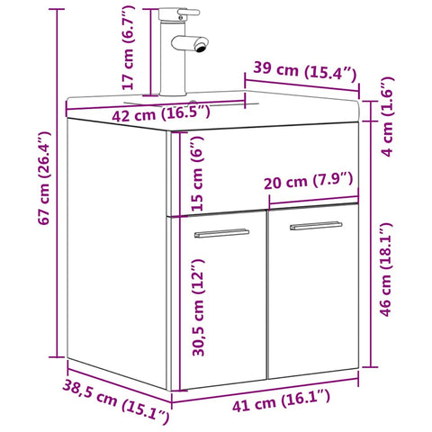Bathroom Sink Cabinet with Built-in Basin and Faucet Sonoma Oak 3325013