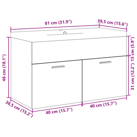 This stylish sink cabinet with a built-in basin, featuring spacious storage space, is an excellent addition to your bathroom, giving it a tidy and striking appearance!Long-lasting material: The engineered wood is of exceptional quality with a smooth surface and also features strength, stability, and resistance to moisture.Ample storage space: The bathroom sink cupboard offers ample space to easily accommodate your essential toiletries and bath items such as soaps, shampoo, toothpaste, etc.Space-saving design: The top of the bathroom cabinet is ideal for placing the sink so that you can fully utilise the vacant space under the sink.Wall-mounted function: The bathroom cabinet can be wall-mounted to add extra storage space. That way, you can maximise your floor space and keep the area clean.Easy to maintain: Thanks to its smooth surface, the bathroom cabinet is easy to clean with a damp cloth and requires less maintenance.Good to know:Screws and plugs for inside the wall are not included. We advise to find and use screws and plugs suitable specifically for your walls. If you're not sure, you can consult with a professional. Please read and follow each step of the instructions.