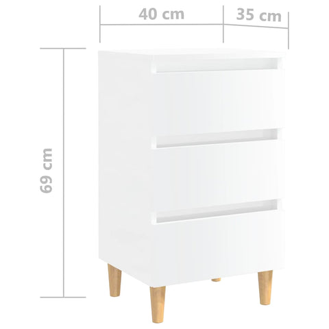 Bed Cabinet with Solid Wood Legs High Gloss White 40x35x69 cm 805899