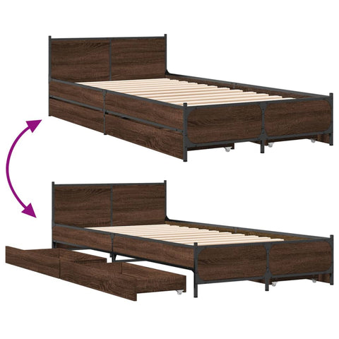 Bed Frame with Drawers without Mattress Brown Oak 75x190 cm Small Single 3279976