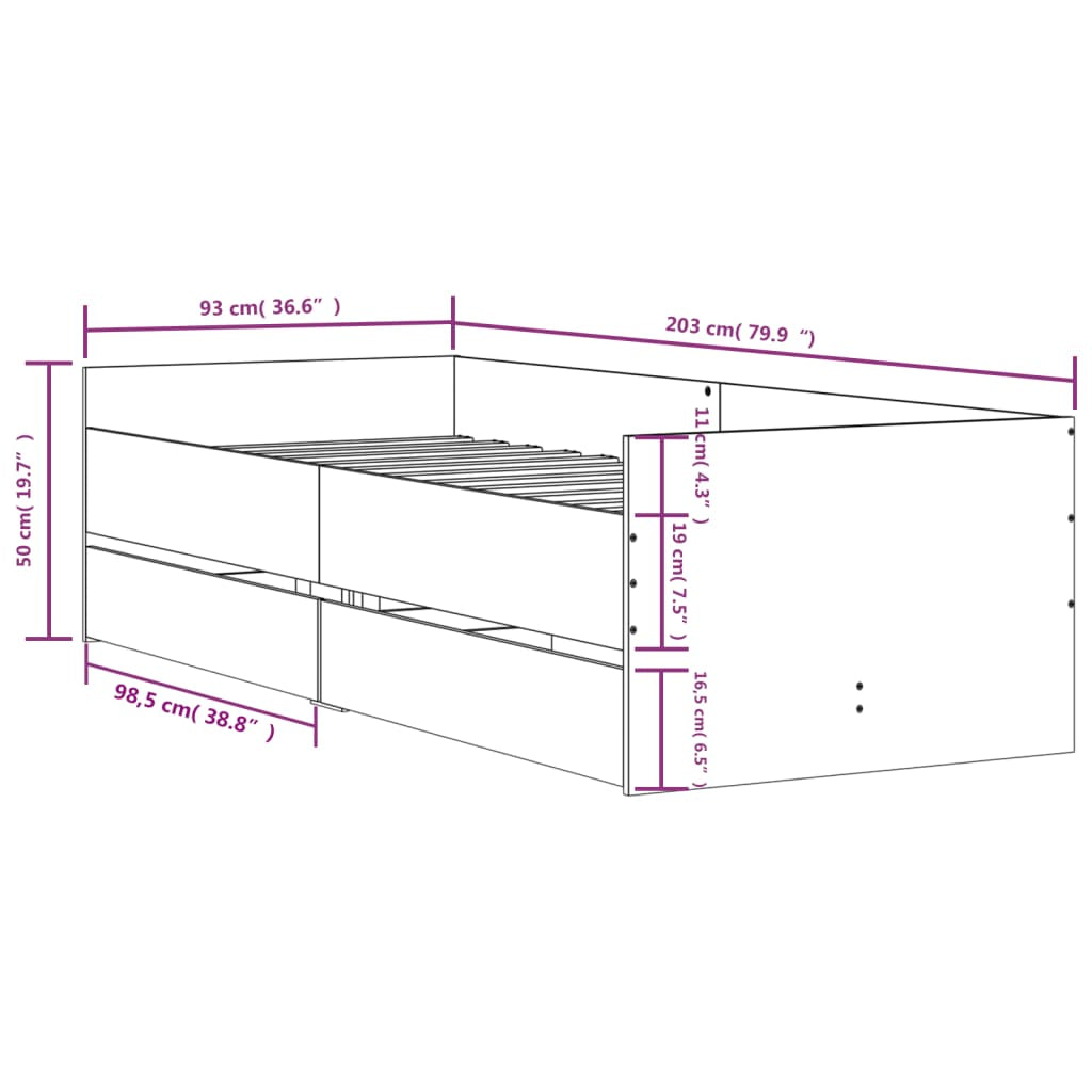 Bed Frame with Drawers without Mattress Grey Sonoma 90x200 cm 3207348