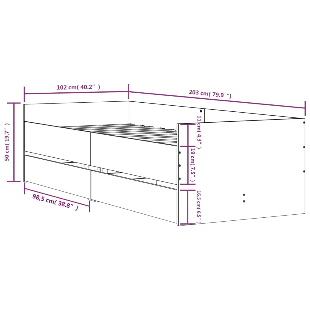 Bed Frame with Drawers without Mattress Sonoma Oak 100x200 cm 3207338