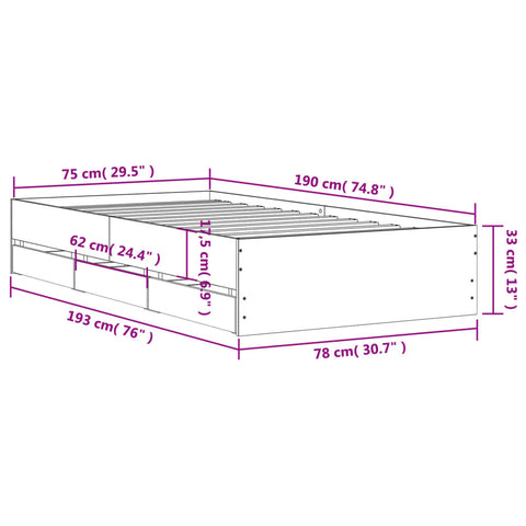 Bed Frame with Drawers without Mattress White 75x190 cm Small Single 3207329