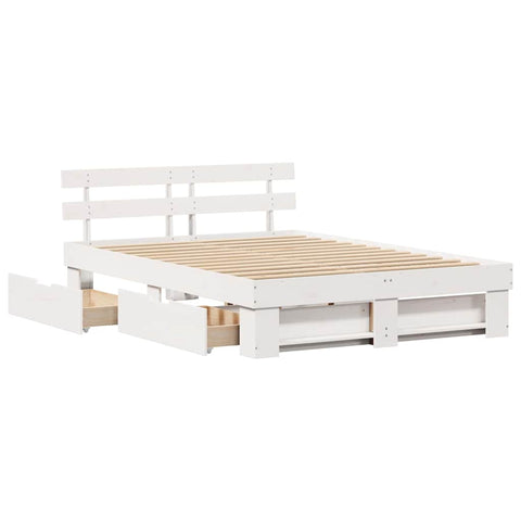 Bed Frame with Headboard White 150 x 200 cm Solid Pine Wood 3382272