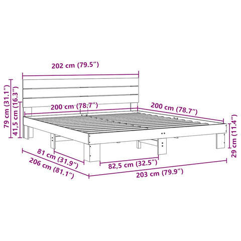 Bed Frame with Headboard without Mattress 200x200 cm Solid Wood Oak 3315726