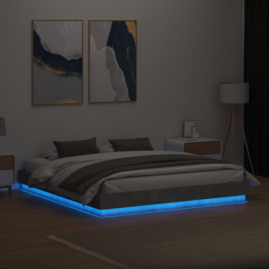 Bed Frame with LED without Mattress Concrete Grey 200x200 cm 3209768