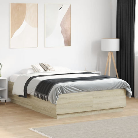 Bed Frame with LED without Mattress Sonoma Oak 140x190 cm 3209641