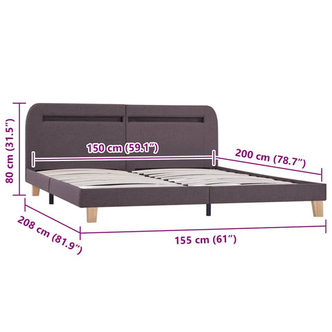 Bed Frame with LED without Mattress Taupe Fabric 150x200 cm King Size 281094